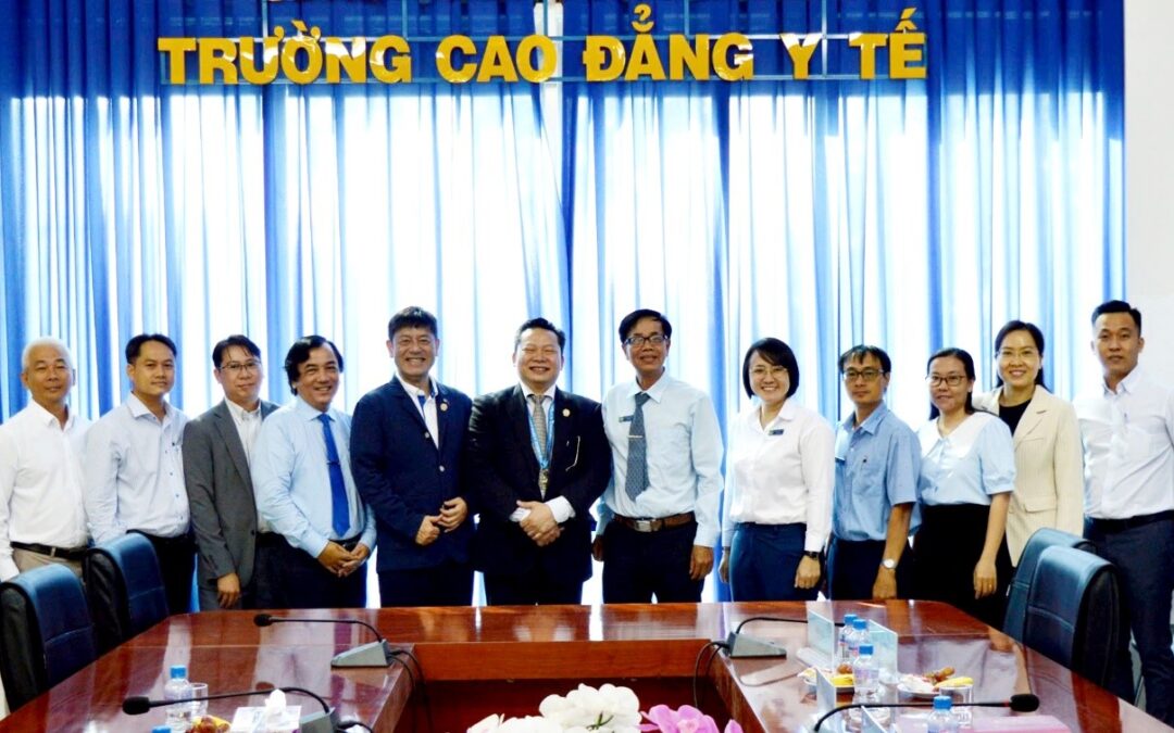 Sáng ngày 13/3/2025, Trường Cao đẳng Y tế (CĐYT) Đồng Tháp tiếp và làm việc với đoàn công tác từ Viện Nghiên cứu giáo dục y tế phúc lợi Nhật Bản – Châu Á (JAMWEI) do Ông Yoshino Masayoshi – Chủ tịch Viện JAMWEI làm trưởng đoàn cùng các thành viên tham dự. Về phía Nhà trường có BSCKII. Nguyễn Tấn Hưng – Hiệu trưởng; ThS. Châu Thị Thúy Hằng – Phó Hiệu trưởng và lãnh đạo các phòng, khoa.