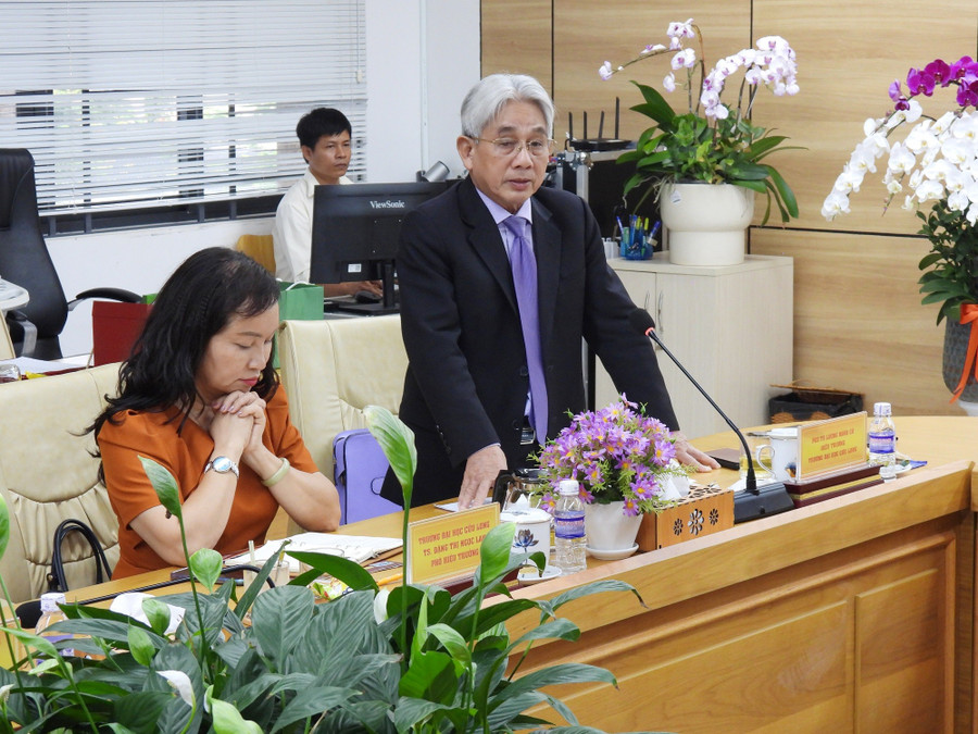 PGS.TS Lương Minh Cừ – Bí thư Đảng ủy, Hiệu trưởng Trường ĐH Cửu Long phát biểu tại buổi làm việc.