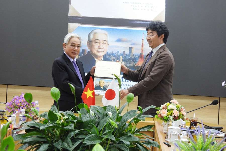 Trường ĐH Sức khỏe TOKYO trao chứng nhận giảng viên thỉnh giảng vinh dự cho PGS.TS Lương Minh Cừ.
