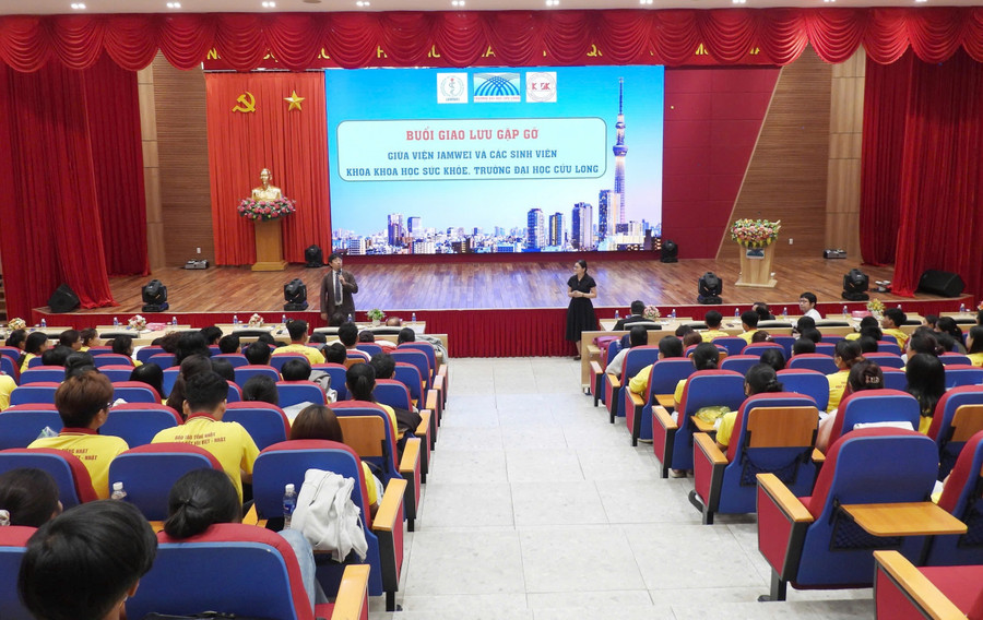 Cùng ngày, Trường ĐH Cửu Long phối hợp với Viện JAMWEI, Trường ĐH Sức khỏe TOKYO, Tập đoàn y tế YUYUKAI, Bệnh viện Đại học Y TOKYO tổ chức buổi gặp gỡ, giao lưu với 360 sinh viên của Khoa Khoa học sức khỏe đang học tiếng Nhật do Trung tâm Nhật ngữ Terakoya giảng dạy. Qua đó, giúp các em tìm hiểu, trang bị thêm những kiến thức về văn hóa, đất nước và con người ở Nhật Bản.